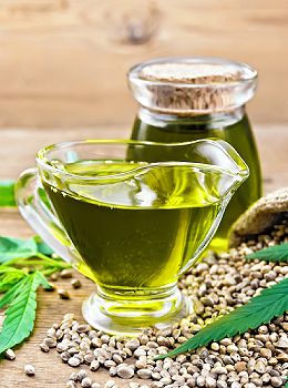 Конопляное масло получается из семян растения, которое относится к семейству Коноплевых. Получают его путем холодного отжима или горячего прессования. Наиболее ценное свойство этого масла – сбалансированный источник полиненасыщенных жирных кислот Омега-3 и Омега-6. Они необходимы при профилактике заболеваний сердечно-сосудистой, нервной системы и ожирении. Масло богато природными антиоксидантами, которые предупреждают преждевременное старение кожи. В нем много витаминов А, В1, В2, В3, В6, С, D, Е. Также оно содержит минеральные вещества, например: фосфор, калий, цинк, кальций, марганец, железо, сера. Содержит хлорофилл. Это вещество обладает противоопухолевым действием.
