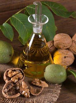 Масло грецкого ореха получается методом холодного прессования из ядер грецкого ореха. Оно нашло широкое применение в пищевых и лечебно-профилактических целях. Его взяли на вооружение косметологи. В его состав входят ненасыщенные жирные кислоты. Также содержит необходимые для кожи витамины A, C, K, P, группы B, каротиноиды и такие макро- и микроэлементы: железо, магний, йод, кальций, кобальт, цинк, медь.