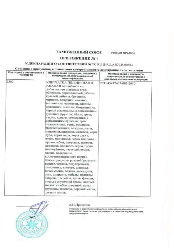 Приложение № 1 к Декларации НПО «Компас Здоровья». Клетчатка пшеничная и ржаная