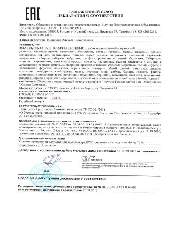 Декларация НПО «Компас Здоровья». Флаксы льняные