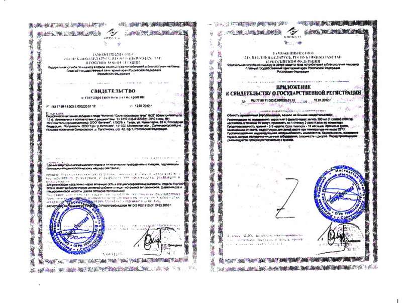 Свидетельство и приложение ООО «Центр Фиточаев». Фиточай №32