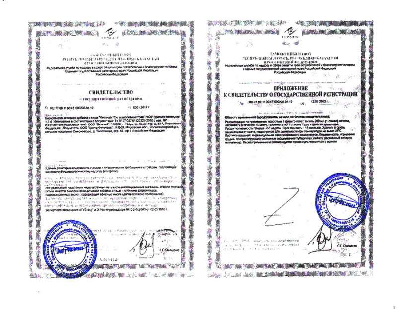 Свидетельство о государственной регистрации и приложение к данному свидетельству подтверждает изготовление продукции ООО «Витачай» в соответствии с Едиными Санитарно-эпидемиологическими и гигиеническими требованиями и изготовление в соответствии с ТУ.