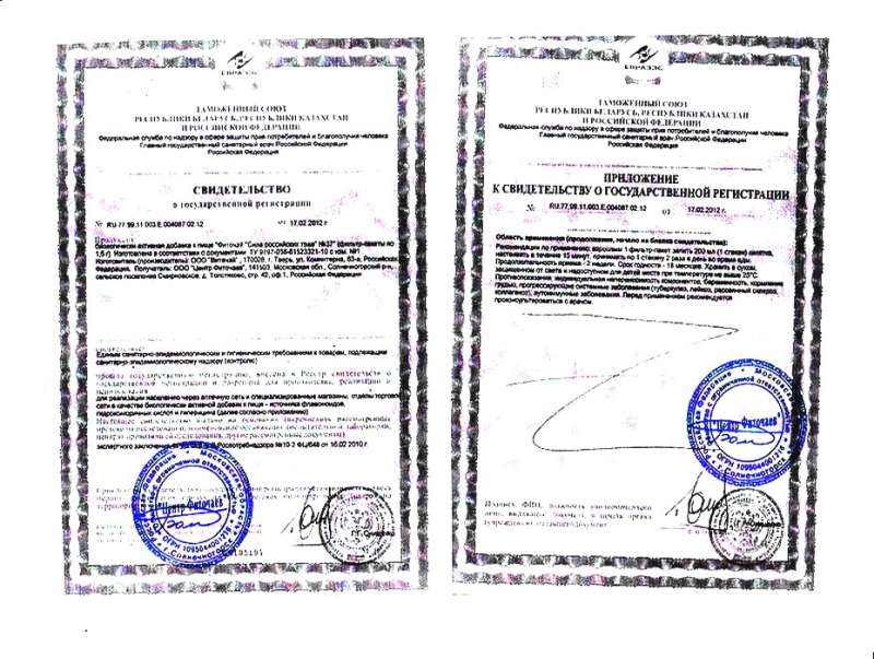 Свидетельство и приложение ООО «Центр Фиточаев». Фиточай №37
