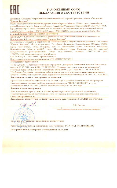Декларация НПО «Компас Здоровья». Клетчатка конопляная с добавками и без