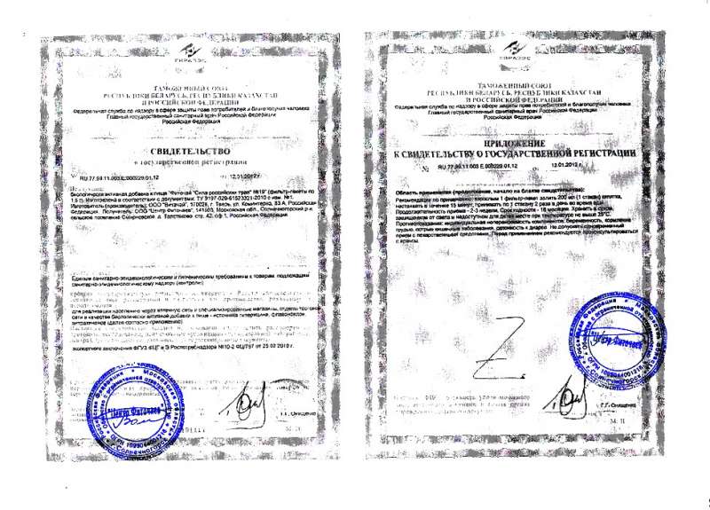 Свидетельство и приложение ООО «Центр Фиточаев». Фиточай №19