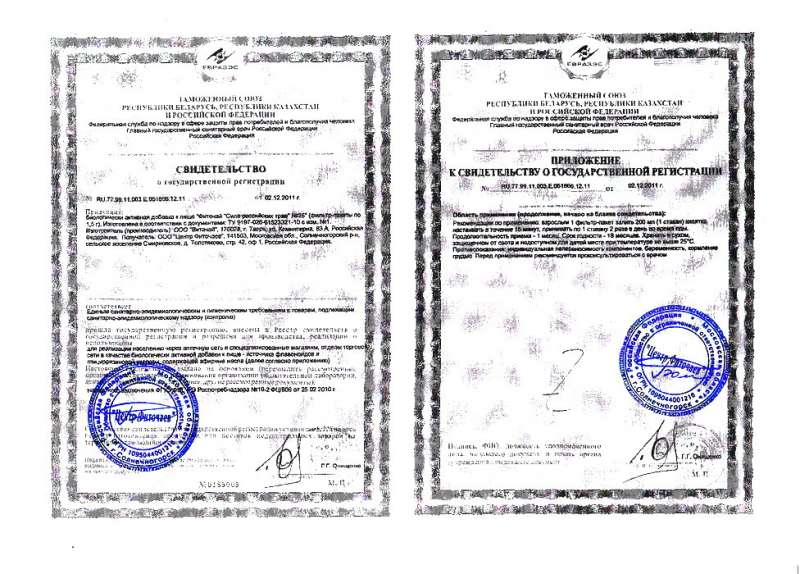 Свидетельство о государственной регистрации и приложение к данному свидетельству подтверждает изготовление продукции ООО «Витачай» в соответствии с Едиными Санитарно-эпидемиологическими и гигиеническими требованиями и изготовление в соответствии с ТУ.