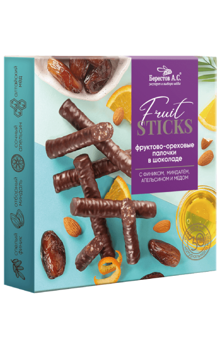 Фруктово-ореховые палочки Берестов А. С. Fruit Stiсks с фиником, апельсином и миндалём.