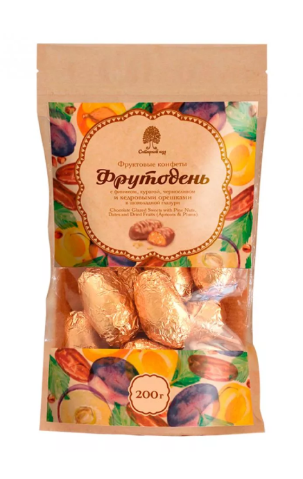 Конфеты Фрутодень «Сибирский кедр» – это фруктовые конфеты с цельным кедровым орехом, покрытые шоколадом. Богатые пектинами, клетчаткой, минеральными веществами, микроэлементами, витаминами, глюкозой, Фрутодень заряжают энергией, нормализуют обменные процессы и благотворно влияют на работу всего организма.
