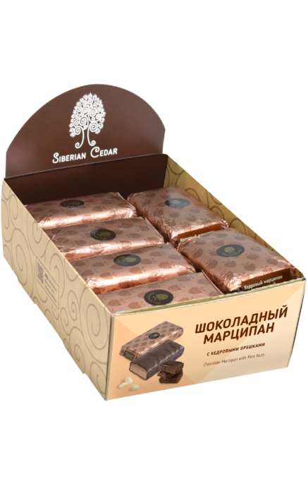 Кедровый марципан из кедрового ореха покрытые шоколадной глазурью – самые популярные батончики от «Сибирского кедра» среди детей и взрослых Пикантный вкус и яркое послевкусие марципана удивят даже бывалых ценителей сладостей. Кедровый марципан – это удивительный десерт, который покоряет сердца гурманов своим неповторимым вкусом и ароматом. Марципан может быть как самостоятельным полезным перекусом, так и дополнением к чаю или любому другому любимому напитку. Конфеты марципан в упаковке шоу-бокс подходят для подарка или угощения для друзей и близких.