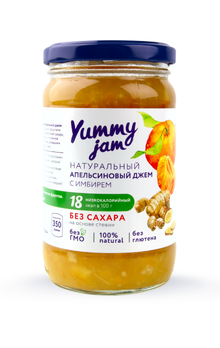 Апельсиновый джем с имбирем без сахара Yummy jam – натуральный джем на основе растительных сахарозаменителей, эритрита и экстракта стевии. Джем сладкий, но не приторный, с кусочками мякоти и полезной цедрой.