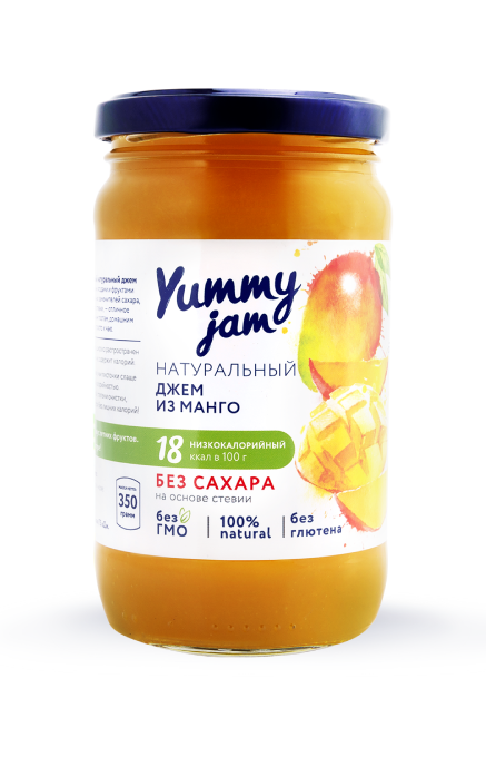 Джем из манго без сахара Yummy jam – это натуральный, диетический джем на основе растительных сахарозаменителей, эритрита и экстракта стевии. Джем сладкий, но не приторный, обладает ярким вкусом, с кусочками фрукта.