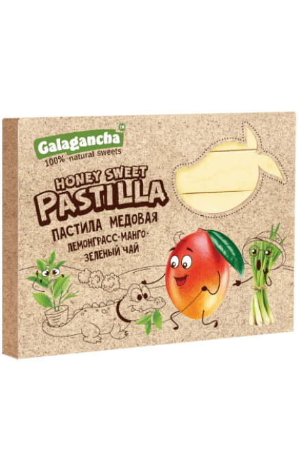 Пастила медовая лемонграсс, манго и зелёный чай Galagancha – это полезный, богатый витаминами воздушный десерт. Изюминкой пастилы является мёд, который при добавлении в продукт не нагревается выше 40 градусов, что позволяет сохранить все его целебные свойства.