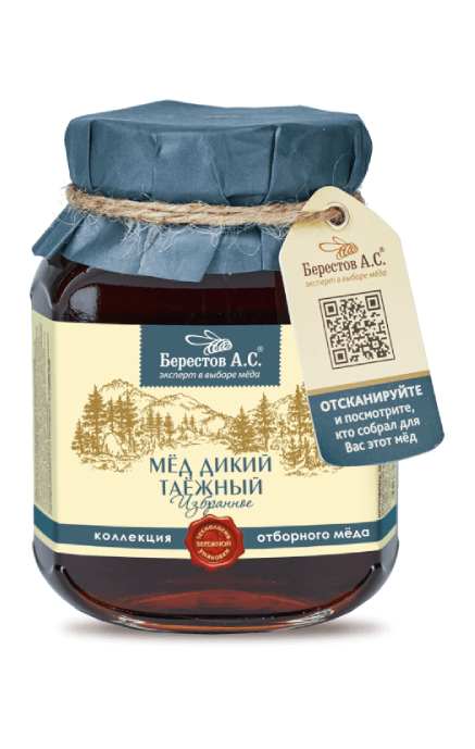 Мед «Дикий Таежный» натуральный Берестов. А.С. – топовая линейка меда, с подтвержденной историей происхождения. Каждая банка имеет индивидуальный номер и QR код, отсканировав который можно увидеть расширенные данные о пчелохозяйствах.