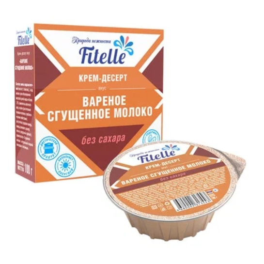 Крем-десерт Fitelle Вареное сгущенное молоко без сахара, 100 г