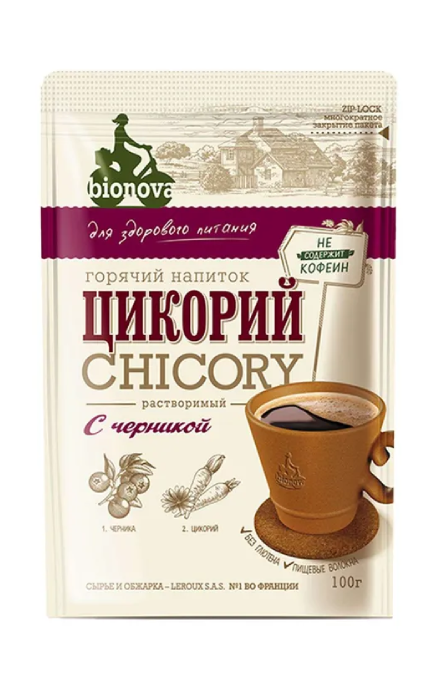 Цикорий Bionova – горячий напиток для здорового питания, изготовленный из 100% корней цикория, выращенных и обработанных по уникальной технологии и экстракта ягод черники.