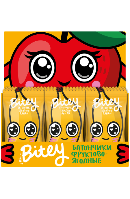 Фруктово-ягодный батончик Bitey Яблоко-Банан, 25 г. Цена за упаковку - 30 шт.