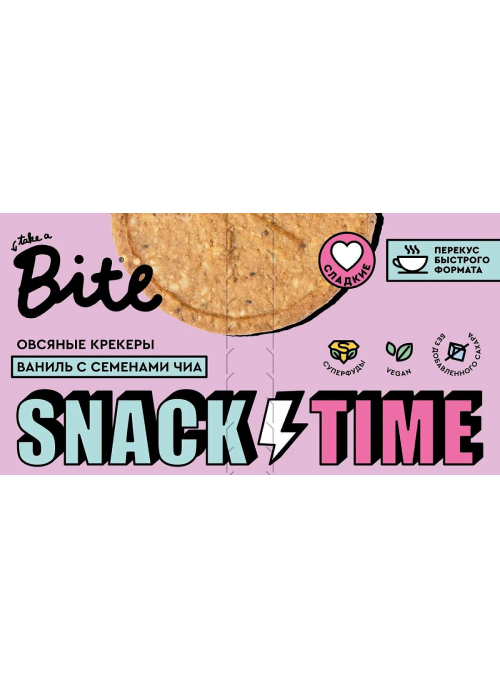 Крекеры Bite овсяные сладкие ваниль с семенами чиа, 125 г