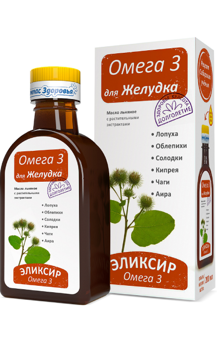Эликсир «Для желудка» – это льняное масло с экстрактами лекарственных растений. Источник Омега-3.