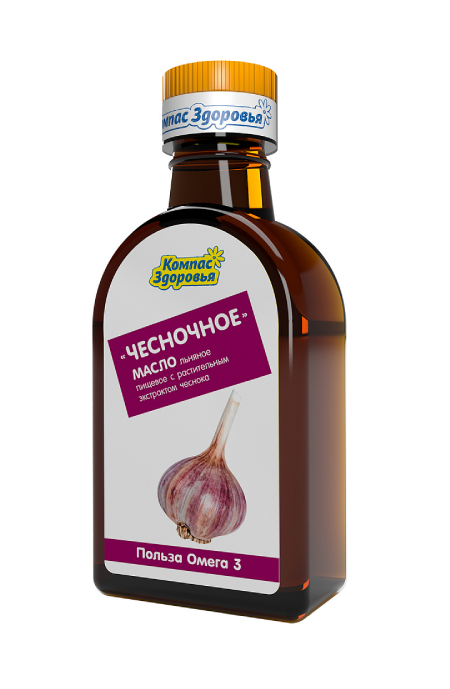 Масло льняное Чесночное Компас Здоровья. Натуральный продукт без консервантов. Высокое содержание Омега 3. Противопаразитарный, антисклеротический эффект.