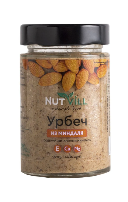 NutVill Урбеч из миндаля – это натуральная, густая маслянистая паста из перетертого миндаля. Изготовлена без добавления сахара. Имеет насыщенный ореховый вкус. Это прекрасный источник витаминов и белка, что важно для ежедневного сбалансированного рациона.