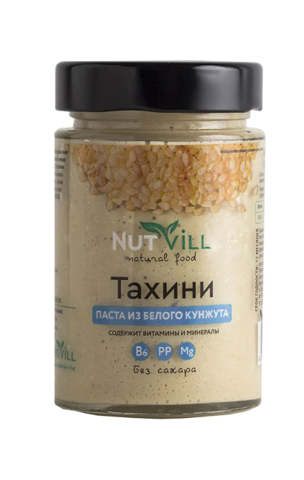 Паста Тахини NutVill – натуральная паста из семян белого кунжута. Без сахара, соли, ароматизаторов и консервантов. Кладезь витаминов на каждый день. Содержит кальций, магний, фосфор и железо. Подходит как людям на традиционном питании, так и веганам и вегетарианцам.