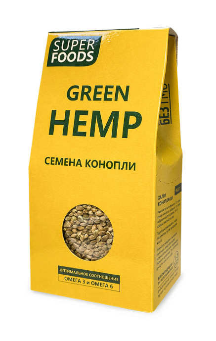 Семена конопли зеленые содержат витамины группы B, Е, С, А, бета-каротин и больше 60% глобулина. Они богаты хлорофиллом. В их составе присутствуют 18 аминокислот, в том числе все незаменимые. В них большое содержание цинка, марганца и кремния. И витамина F. Семена конопли зеленые содержат наибольшее количество эдестина. Эдестин не только помогает в поддержании иммунитета организма. Гамма-линоленовая кислота является полезной в лечении симптомов ПМС и менопаузы. Наличие фитина предотвращает ожирение. Пектины блокируют размножение патогенных организмов в кишечнике и защищают слизистую желудка.