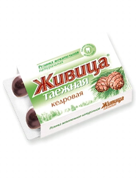 Жевательная резинка кедровая «Живица» обладает бактерицидными и клеящими свойствами, она прекрасно очищает зубы от остатков пищи и дезинфицирует полость рта. В отличие от смол других хвойных пород, живица кедра долго не кристаллизуется и не теряет своих бактерицидных качеств. Она получена путем очистки смолы, собранной в Хакасской тайге. И представляет собой загустевшую смолу хвойных деревьев, вытекающую при повреждении коры. Жевательная резинка кедровая обладает оригинальным вкусом и полезна для желудочно-кишечного тракта, хорошо помогает при изжоге и укачивании, освежает дыхание. Жевательная резинка кедровая может являться помощником при борьбе с простудными заболеваниями.