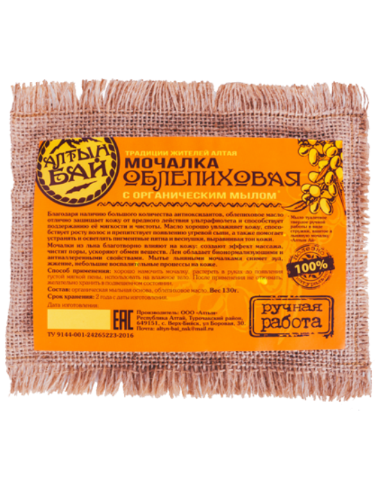 Мочалка льняная с органическим мылом Облепиховая Алтын Бай. Большое количество антиоксидантов.