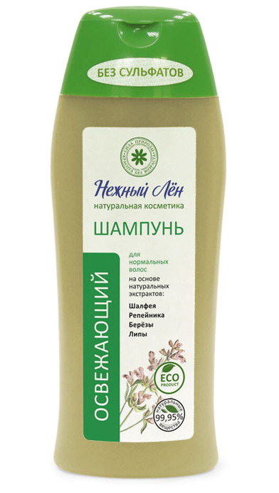 Шампунь Освежающий для нормальных волос очищает волосы и кожу головы, питает, тонизирует и освежает их. Благотворно влияет на структуру волос, делает их мягкими и шелковистыми. Шампунь Освежающий для нормальных волос содержит только естественные природные компоненты. Так, например, экстракты шалфея и березы укрепляют волосы и предотвращают их потерю. Улучшают циркуляцию крови и стимулируют рост волос. Репейное масло используется для укрепления и их роста. Экстракты цветков липы и овса делают ее более восприимчивой ко всем активным компонентам, возвращают волосам естественный блеск. Льняное масло устраняет перхоть, питает, увлажняет кожу головы и волосы. Возвращает им естественную красоту. Протеины пшеницы образует пленку, которая хорошо увлажняет их, препятствует излишнему испарению влаги и помогает снижать статическое электричество. Кислоты делают волосы сильнее. Стягивают расширенные поры, и избавляют волосы от чрезмерной жирности.